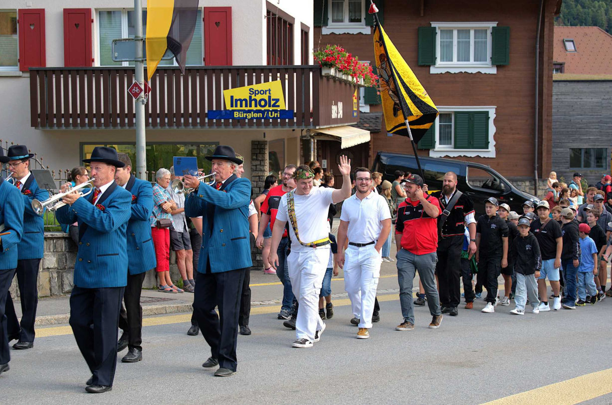 Hinter den erfolgreichen Schwingern und Betreuern reihten sich die Fahne des Urner Kantonalen Schwingerverbandes (UKSV) mit den Jungschwingern sowie den Aktiven des Schwingklubs Bürglen ein. Gefolgt wurden sie vom Vorstand des Schwingklubs Bürglen mit der Veteranenfahne und Vertretern des UKSV-Vorstands sowie des Innerschweizer Schwingerverbandes. Auch die Regierungsräte Georg Simmen und Urban Camenzind sowie Vertreter benachbarter Schwingklubs nahmen am Umzug teil.