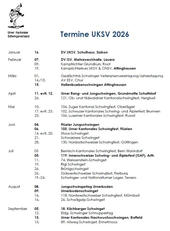 Schwingfeste, Versammlungen etc. Download Jahrsprogramm 2026 Schwingfeste der Aktiven und der Jungschwinger Im Vollbildmodus anzeigen